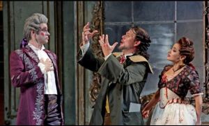 certamente più in tono con lo svolgimento “buffo” della trama rispetto a certe scenografie/regie cervellotiche quali quelle di Michieletto, Wilson etc. Siamo in presenza di un tipico libretto settecentesco con travestimenti, riconciliazioni etc. ma anche con un finale nel quale le coppie (a parte quella dei due protagonisti) non si ricompongono nel classico lieto fine. Una struttura dell’opera assolutamente barocca con la successione di “recitativi” e “arie” e il concertato nel finale di ogni atto. E in alcune arie si ritrova già la capacità musicale di Mozart anche se inframmezzata da altre molto più banali. ripetitive e tradizionali. Un’opera che mentre si sviluppa piacevolmente nel primo atto si sfilaccia parecchio nei due atti successivi rendendo lo spettacolo di una certa noiosità e ripetitività. Ma va ancora una volta sottolineato che si tratta di opera di un diciannovenne. La tre ore e mezza della durata molto meglio sarebbero state apprezzate se anzichè iniziare alle 20 si fosse iniziato (come in tutti i principali teatri europei) alle 19. E’ questo un provincialismo del quale i teatri italiani non riescono a disfarsi.