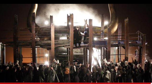 …. questa edizione di Idomeneo re di Creta non sarà annoverata fra quelle memorabili. Tutto l’impianto lascia a desiderare nonostante lo sforzo scenico di porre in primo piano una gigantesca testa di bufalo (di dubbio significato nel contesto dell’opera), una carcassa di nave e un profluvio di fumi. Tutta la regia si muove in una visione algida in questo sottolineata dal costante uso di luci fredde che rendono spesso la scena del tutto funerea.