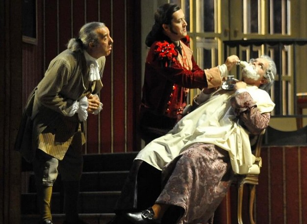 . . e una regia delle più tradizionali, con costumi d’epoca e un eccesso di elementi umoristici certamente in grado di solleticare il palato del pubblico più di bocca buona ma non certamente di qualità. Ora certamente il barbiere è una farsa e quindi il suo aspetto deve riflettere il suo carattere. Ma le mossette da avanspettacolo, con i balletti in riga, le smorfie, le espressioni viete non fanno più parte delle tendenze moderne del barbiere. Può ben essere chei l regista avesse in mente il carnvale in essere a Venezia ma il troppo è veramente troppo e non ha neppure riscosso applausi a scena aparte denotando un pubblico abbastanza scafato. Una direzione musicale scialba è praticamente inesistente con l’orchestra che avrebbe potuto suonare da sola senza il direttore. Megloi non soffermarsi ulteriormente per carità di patria. Un direttore che anzichè imprimere alla musica una carattere si fa trascinare come se la direzione fosse un commento allo spartito.