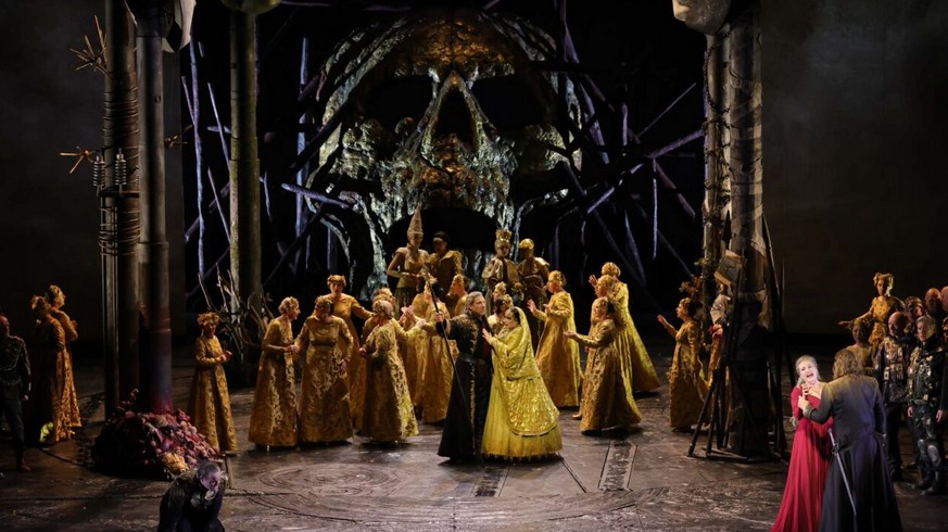 La regia di questo Götterdämmerung ha luci ed ombre. Le luci sono rappresentate -ad esempio – dalla foresta simbolicamente rappresentata da enormi maschere che incombono sui protagonisti e segnatamente nel colloquio fra Hagen e Alberich (in questo caso in forma umana mentre più spesso solo rappresentato – più significativamente – da una voce che proviene da un al di là fumoso e ignoto). Del tutto scadente invece la rappresentazione del popolo dei Gibicunghi che sembrano usciti da una piazza S-Marco durante il carnevale. E che dire del ballerino che si contorce a corredo della salma di Sigfried morto nel finale maestoso ch conclude il ciclo wagneriano. Il clima dovrebbe essere quello cupo, tragico, grandioso celebrativo della scomparsa dell’eroe mentre il folletto che si aggira c’entra come i cavoli a merenda.