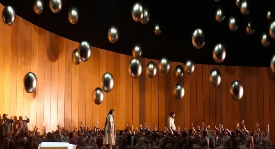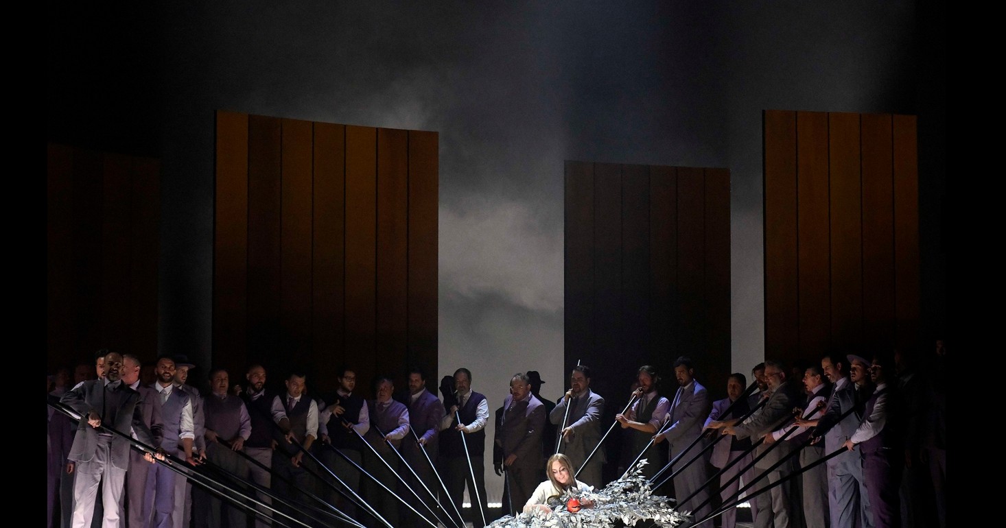 Sarebbe troppo facile etichettare la messa in scena come l’ennesima “michielettata”. Semplicemente non c’è un solo elemento che rapporti la scenografia all’opera. E non si tratta di vieto conservatorismo. Semplicemente sembra di trovarsi davanti a un rompicapo che non ha una soluzione definita e che induce gli spettatori a faticose quanto improbabili interpretazioni. Cosa c’entra la vasca da bagno iniziale con acqua che deborda e nella quale Elsa lava gli indumenti del fratello (vasca che, quale Moloch, si ripresenta nel finale dell’opera)? E che dire di un Lohengrin che arriva dal Monsalvat trascinando (avete capito bene trascinando) a fatica una bara che rappresenterebbe il cigno (forse andato in “panne”, perché alla fine dell’opera viene aperta con spargimento di piume mentre Lohengrin semplicemente scompare?). E perché Heinrich è claudicante? E che dire del povero Friederich von Telramund sconfitto nel duello con Lohengrin non da una spada ma da una melassa piovuta dal cielo e che poi si aggira sul palcoscenico con una canotta stile Bossi ad Arcore? Ma il top è rappresentato da un profluvio di uova che appaiono dal cielo mentre una è presente sul palcoscenico che coperta di vernice nera che progressivamente ricopre il proprio guscio di nero accecando con il colore la povera Elsa. In fondo più facilmente accettabile è il vestito nero anni ’50 di Ortrud completato da cappellino con veletta di ordinanza. Potrei continuare ma sarebbe inutile.